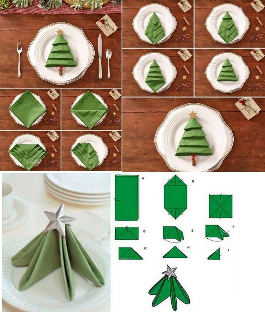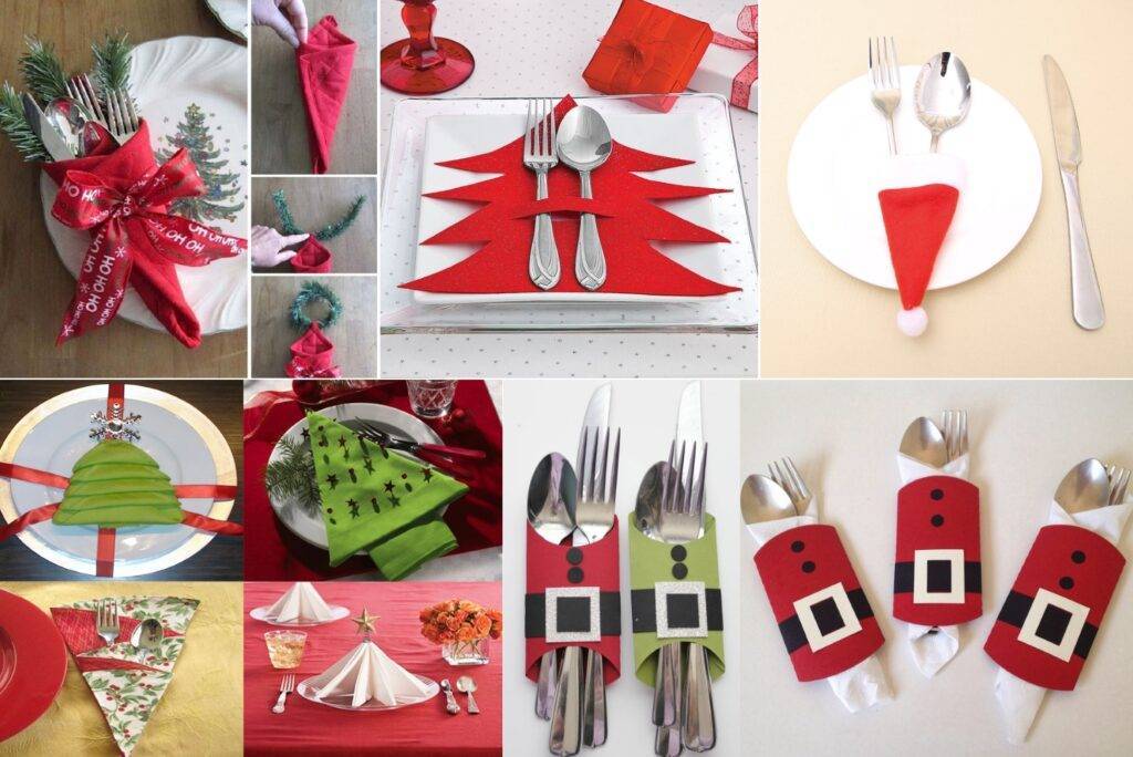 Есть множество способов красиво сервировать новогодний стол салфетками. Вот несколько из них.