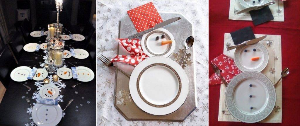 Новогоднюю посуду также можно разложить на столе оригинальным способом