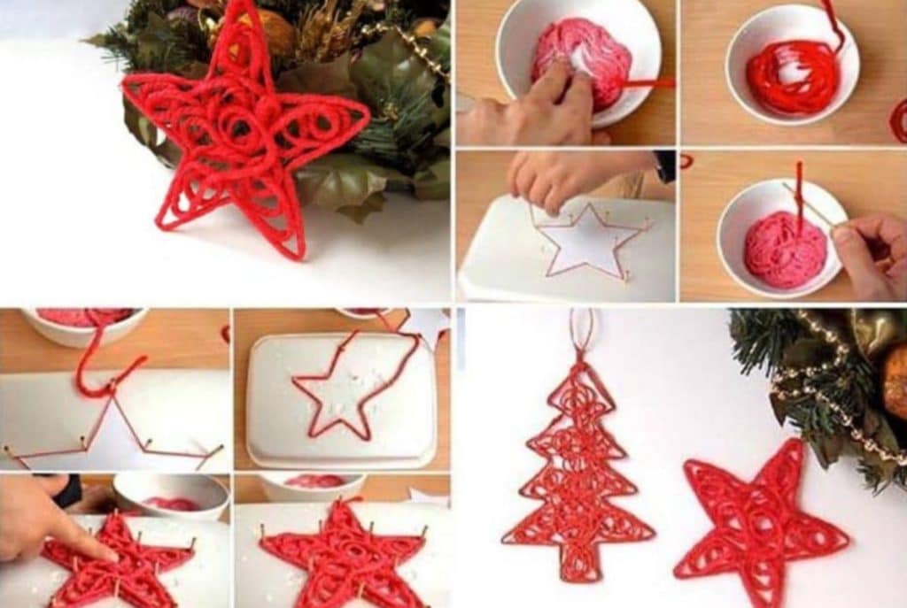 Легкие, невесомые украшения из ниток можете сделать вместе с детьми, которыми можно украсить весь дом и красавицу елку.