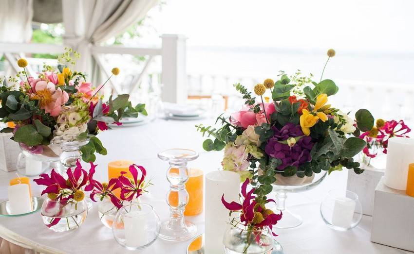 Добавить изюминку помогут маленькие букеты из цветов.