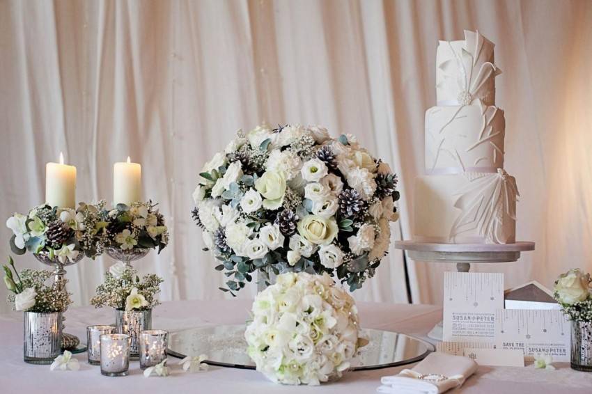 Кроме парадной сервировки и скатерти, свадебный стол нуждается в дополнительном декоре. Каким он может быть?