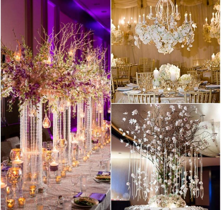 Количество декора зависит от стиля торжества и нарядов молодоженов.