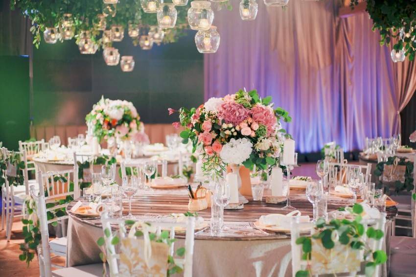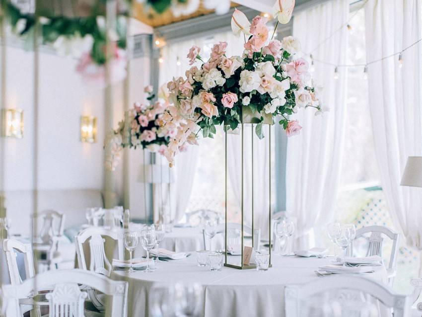 Живые цветы – красивые декорации размещаются на столах и смотрятся прекрасно в дополнении с общим интерьером.