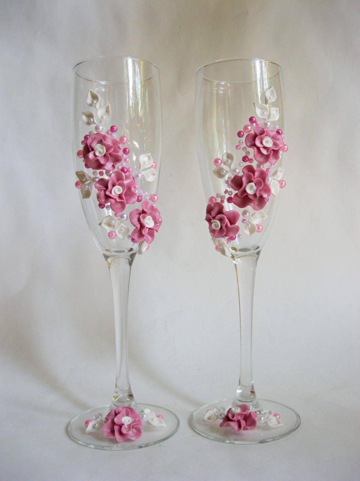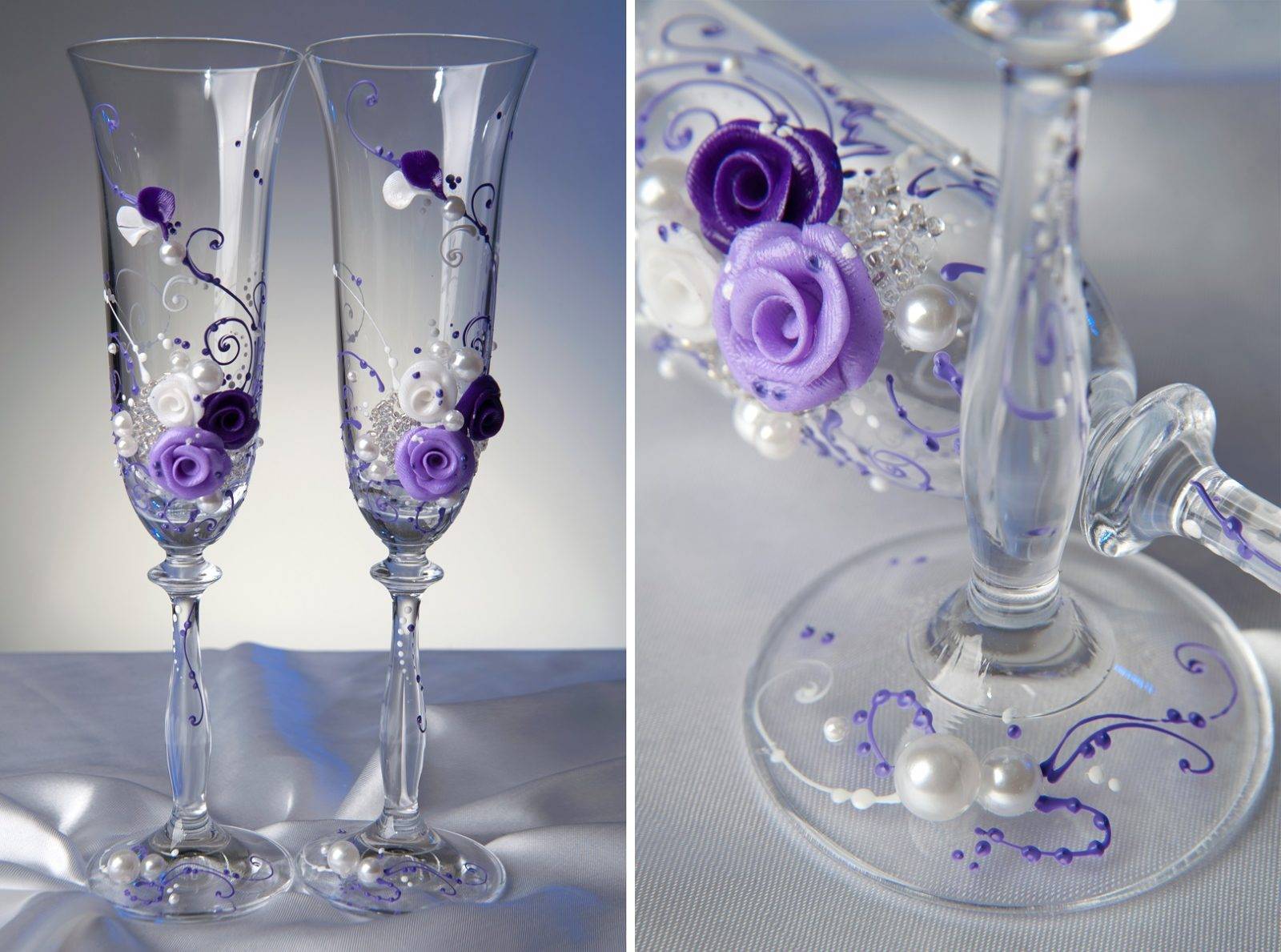Украшение свадебных бокалов
