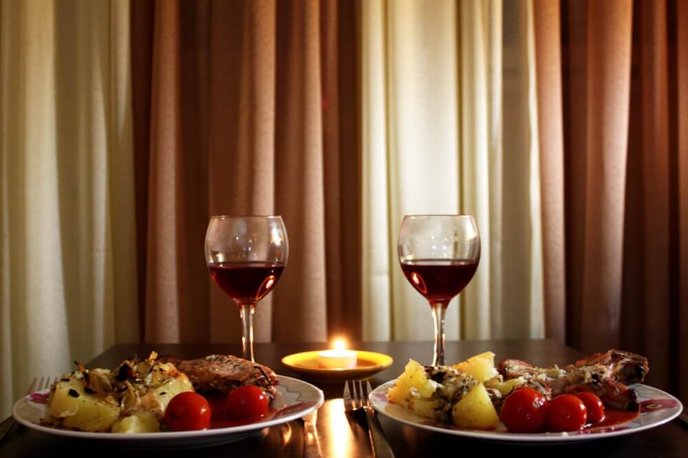 Во время романтического ужина допустимо не только кушать и пить. Дома развлечения часто ограничиваются играми в карты, угадыванием слов, «кубиками желаний», танцами посреди гостиной. Для спокойного семейного вечера в качестве развлечения подойдут любимые обоими фильмы, листание альбомов с фотографиями.