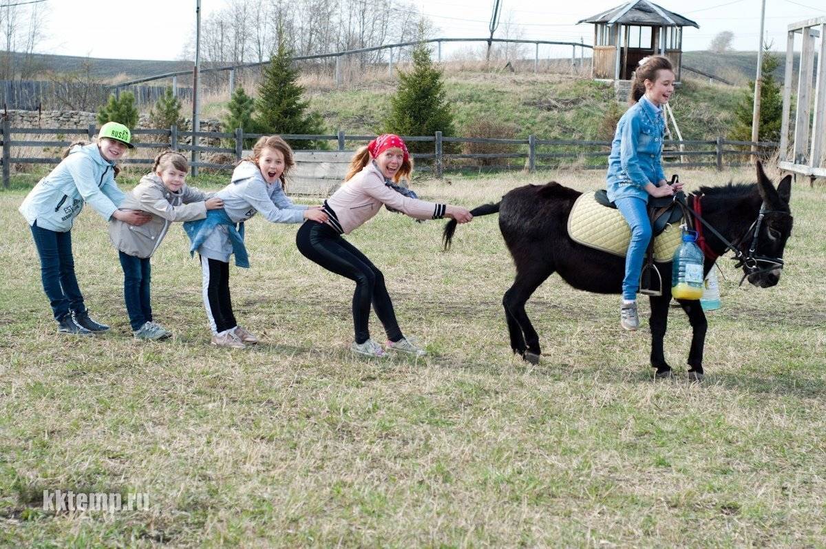 — родители могут арендовать беседку с мангалом – 500р/час, посетить экскурсию – 150р/чел и покататься на лошадях – 150р/круг.