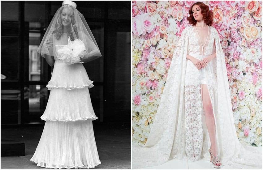 Бывает, модные кутюрье включают в свои коллекции свадебные платья, характерные для более «далёких» эпох, например: