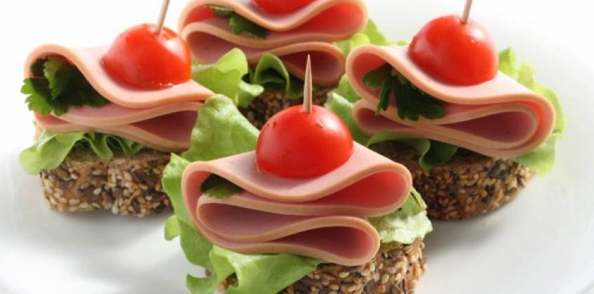 Канапе смотрятся празднично и позволяют подать самые привычные продукты более эффектно. Кроме того, ими очень удобно угощаться. Предлагаю варианты из колбас и сыра, а так же на сайте есть закуски из чернослива в беконе, варианты из сыра с плесенью с виноградом и шампиньонами и много разных бутербродов и закусок, некоторые из которых тоже можно взять за основу для канапе.
