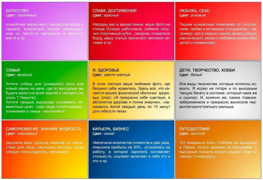 Поскольку сектора карты желаний имеют каждый свои особенности для размещения изображений, нужно быть очень внимательным. Одна малейшая ошибка способна полностью перечеркнуть ход задуманного и принести неприятности.