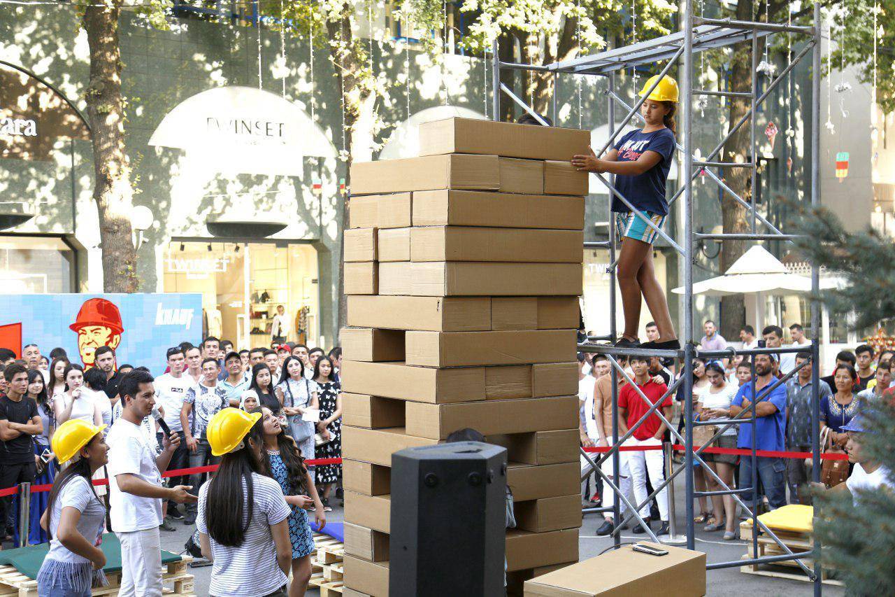 Традиционный конкурс для двух команд строителей. Каждый участник рисует на листе ватмана кирпичик, таким способом команда «выстраивает» свой небоскреб. После остановки времени производят подсчет кирпичиков, определяют победителя по преобладающему числу.
