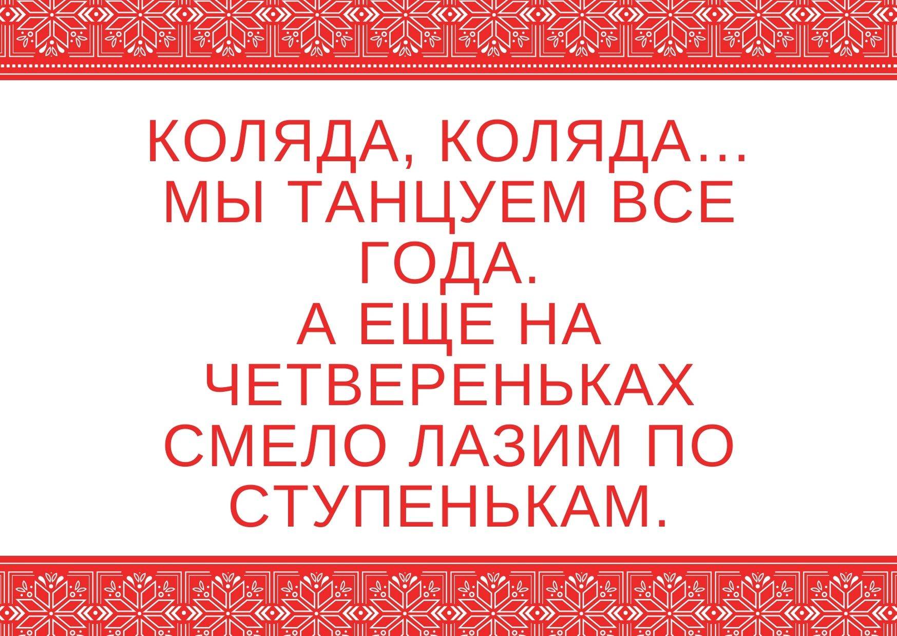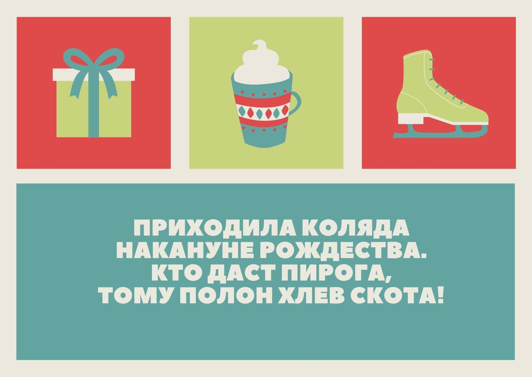 Последняя глава большой подборки колядок на Рождество для детей и взрослых – авторские открытки с поздравлениями. Не верится, что опубликовано 130 озорных стихов-колядок. А распечатав данные открытки, можно дарить их тем, к кому пришли в гости колядовщики.