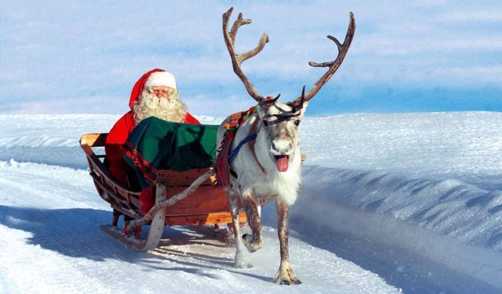 Конечно же пешком Санта Клаус с огромным мешком подарков ходить не может, поэтому он путешествует на летающих санях, запряженных восемью северными оленями. Каждый из них имеет своё имя и характерные особенности: