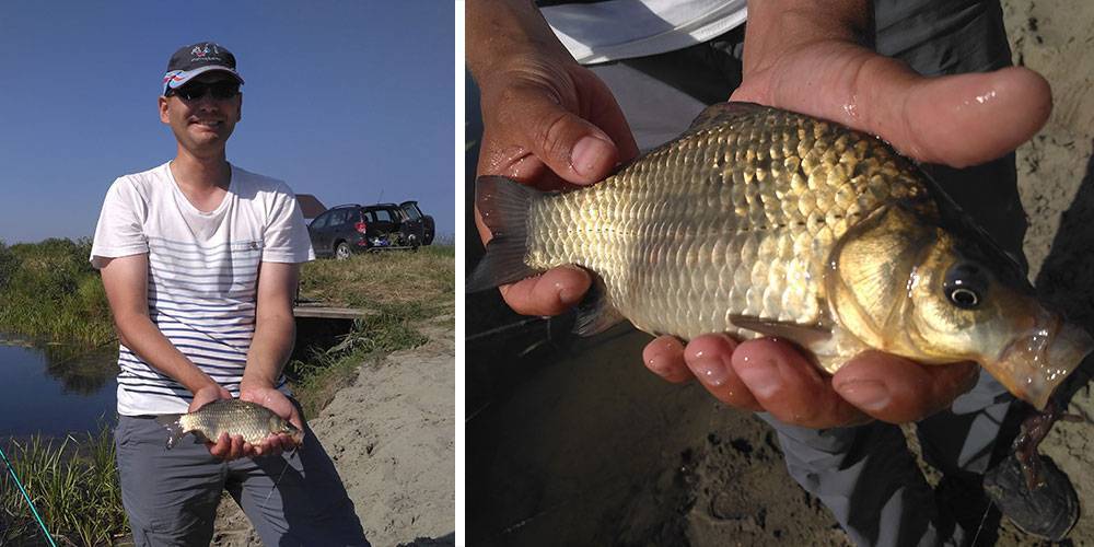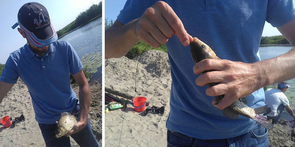 Говорят, что новичкам везет. Но теперь мы еще и знаем, что новичкам-девушкам везет особенно. Пока мужчины с умным видом и сознанием собственного превосходства пытались что-то там изобразить с удочками, представительницы слабого пола начали ловить рыбу. Сначала попадались только мелкие окушки и пескарики. Но затем стал поклевывать и карпик. Совсем небольшой, но по сравнению с теми же пескарями он выглядел настоящим гигантом.