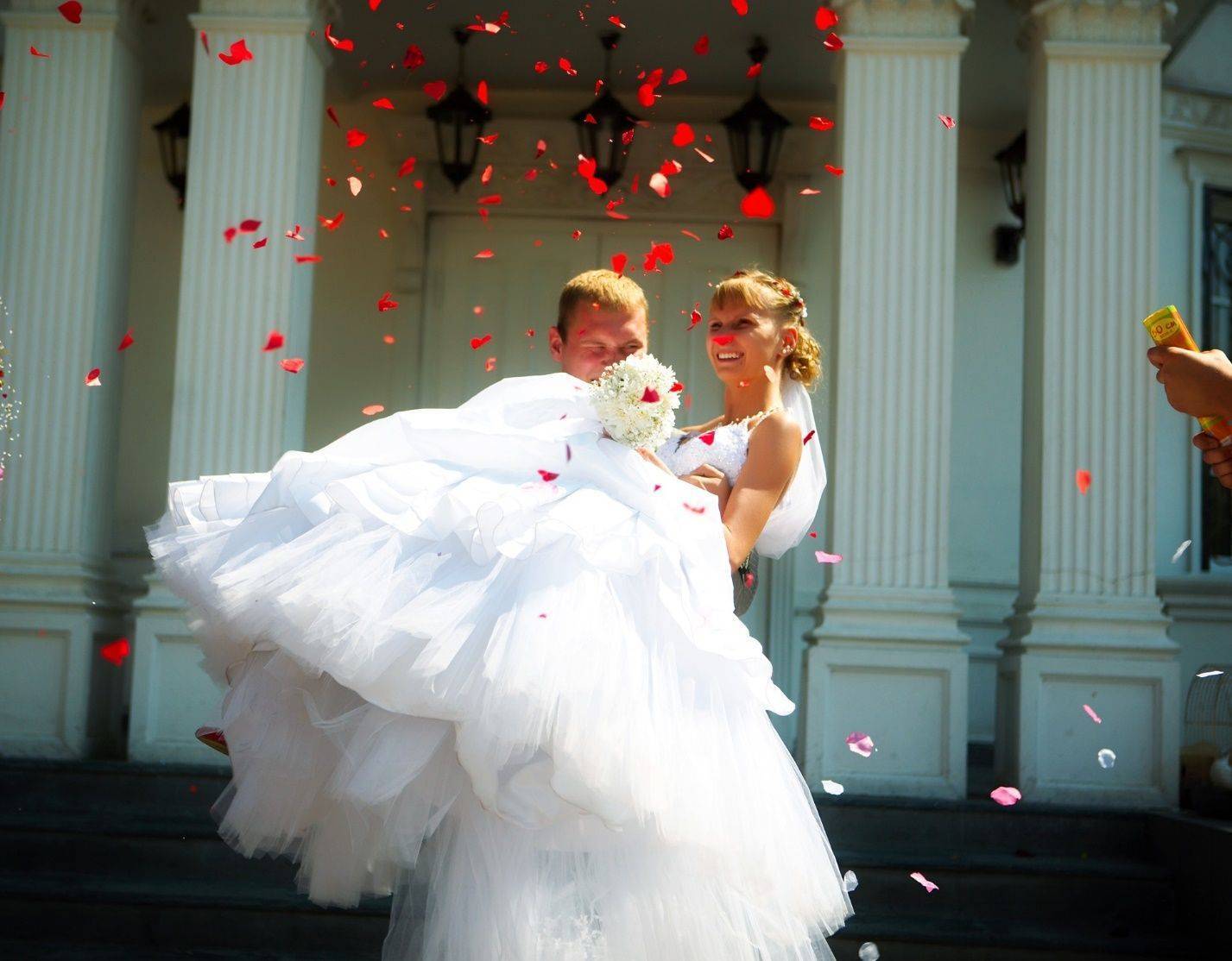На этом свадебная церемония считается оконченной, следует быстро принять цветы и теплые пожелания и покинуть помещение.