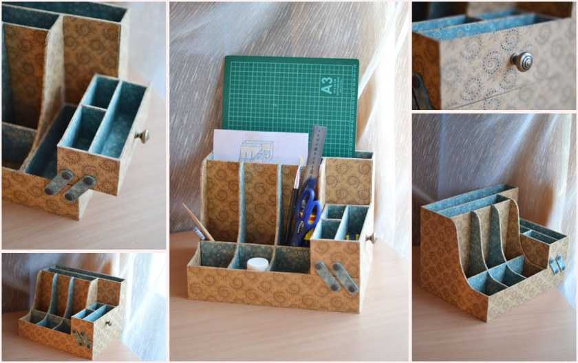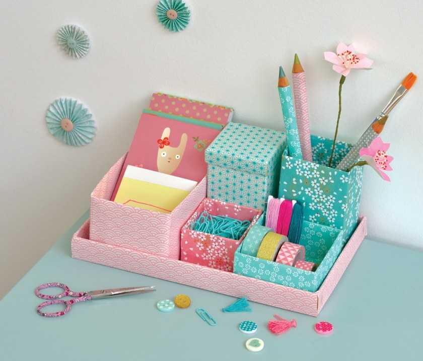 Дополнительные детали (глазки, рот) можно сделать из фетра, приклеив их на фактурную основу. Все стаканчики установить на поднос, снабженный ограничительными бортиками. Подобный органайзер не только весьма стильный, но и полезен на практике.