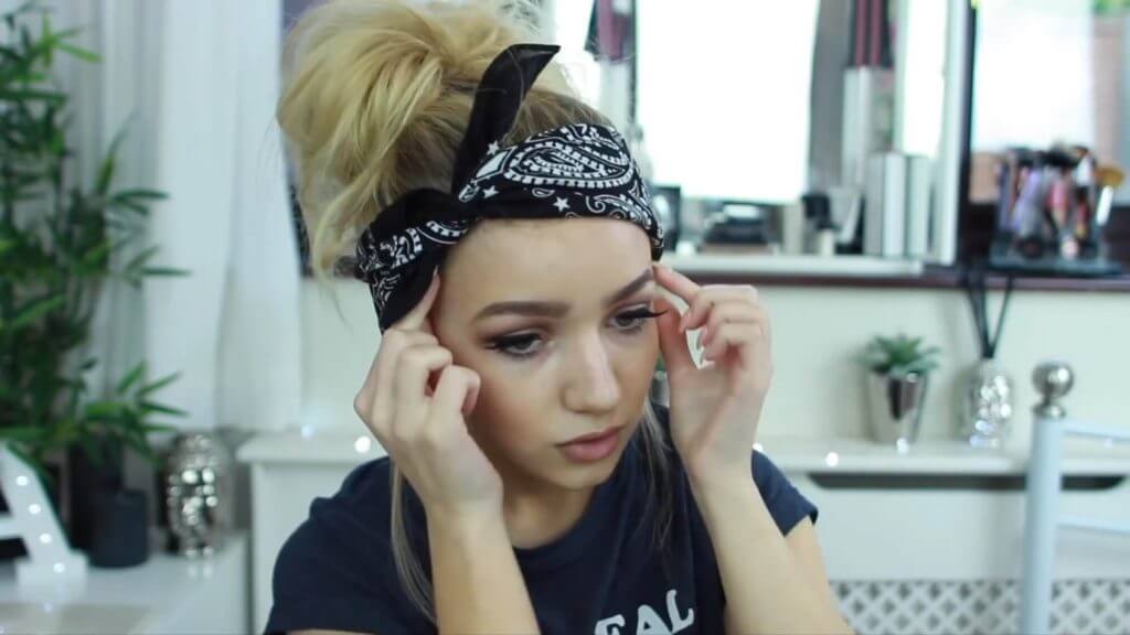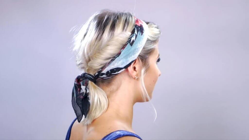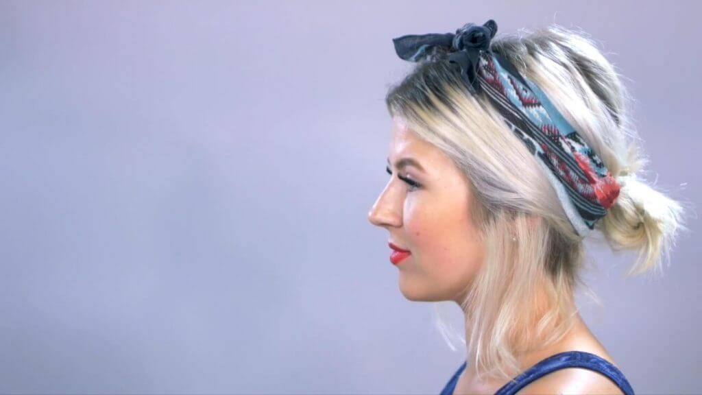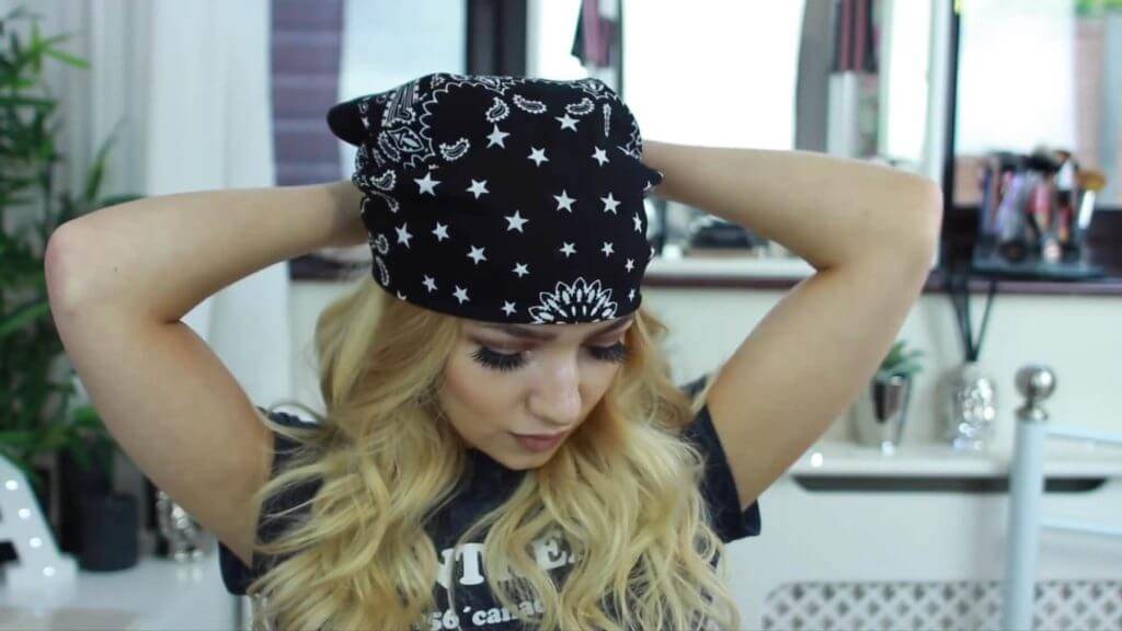 Бандана завязывается на бант или просто соединяются концы. Есть ещё один способ – называется он “ободок”. Самый узкий вариант банданы завязываем сзади под волосами.