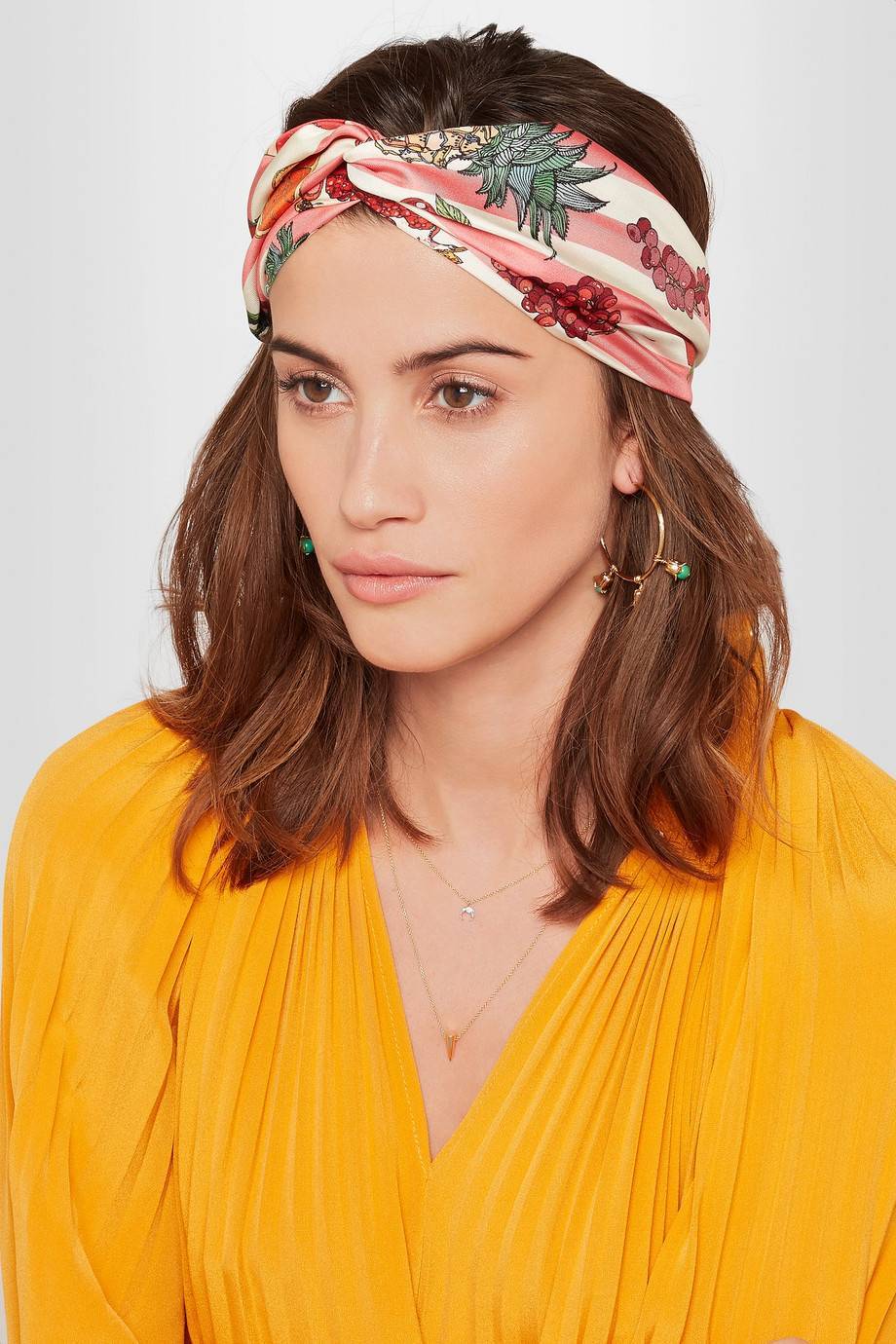 - Принтированная повязка перекликается с цветовой гаммой в одежде.