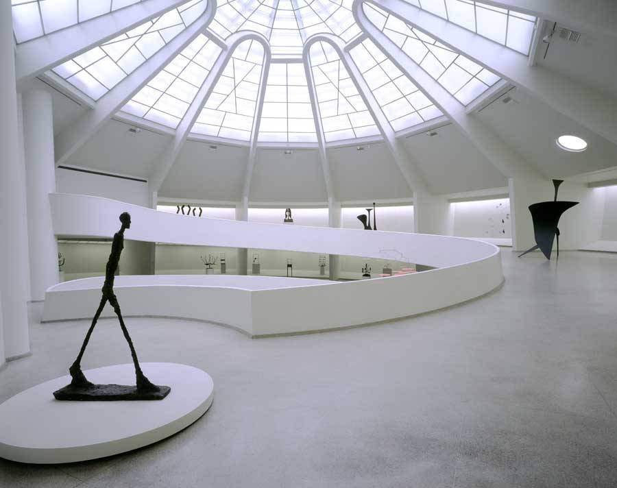 Музейное пространство имеет винтообразную структуру. Посетитель входит сверху, затем постепенно спускается на уровень земли по слегка наклонному пандусу: таким образом, понятие выставочного зала исчезает в пользу непрерывности презентации.