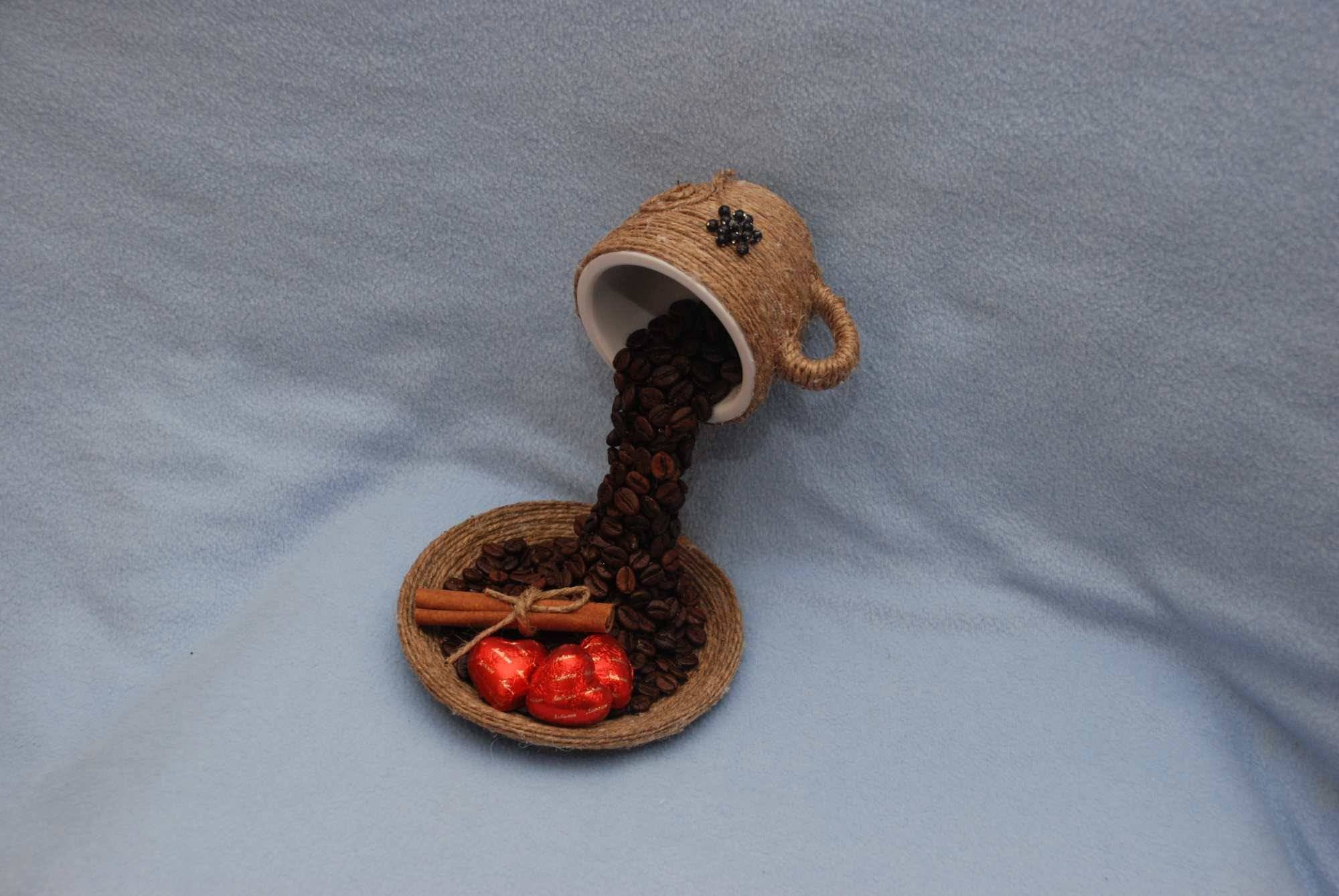 Не менее потрясающим подарком станет «Летающий топиарий из зерен кофе». Для его изготовления необходимо: