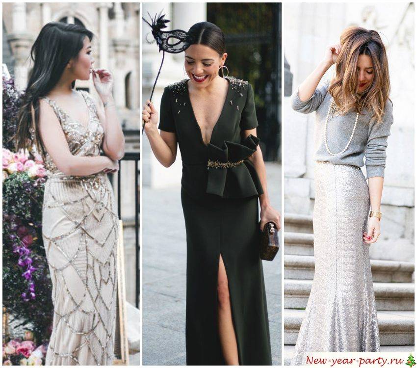Для новогодней вечеринки в клубе или кафе прекрасно подойдет платье, топ или юбка с пайетками. Пусть сияющая одежда будет максимально простого, но современного фасона. Не старайтесь «молодиться», но и визуально прибавлять возраста излишними украшениями тоже не стоит.