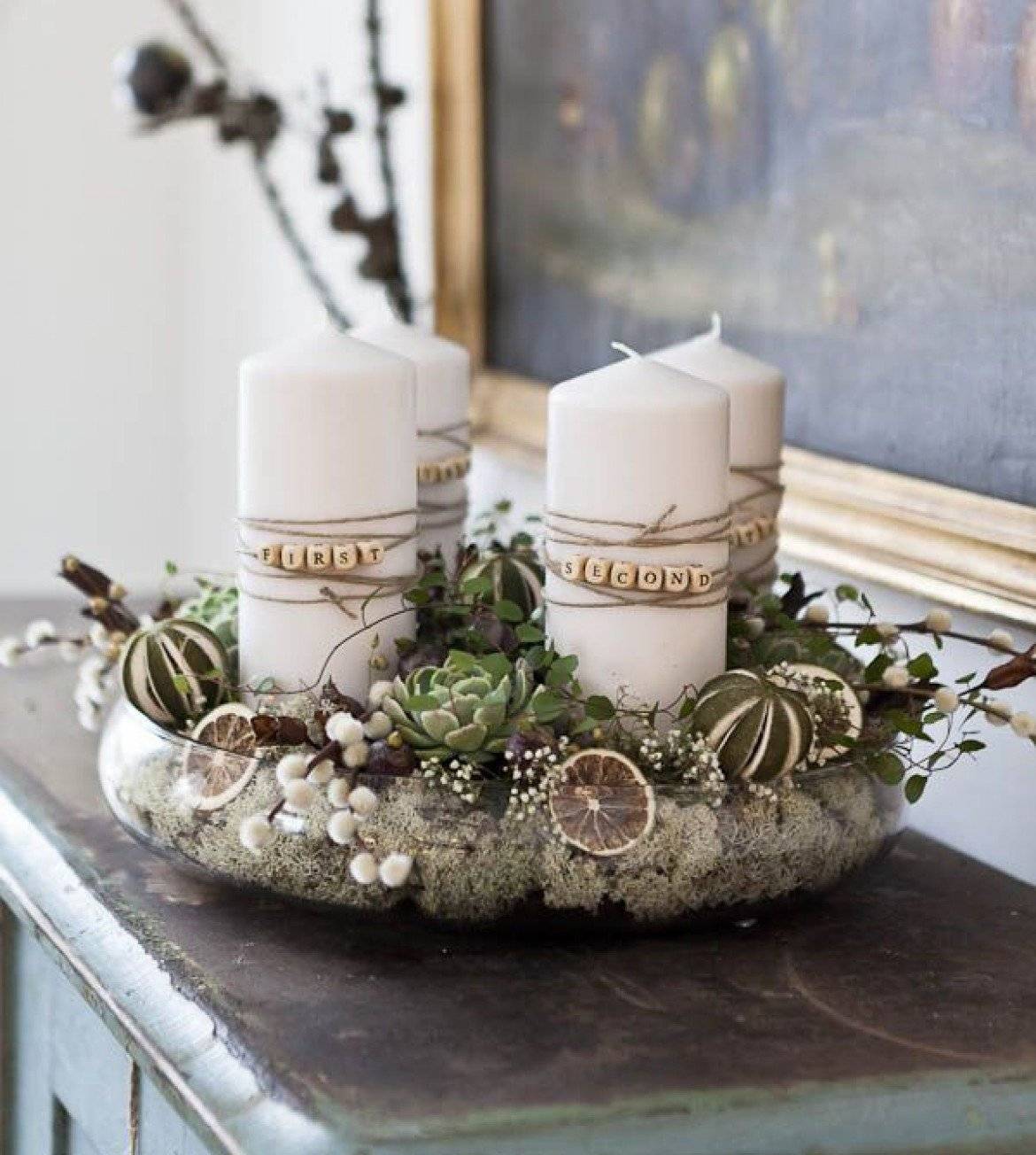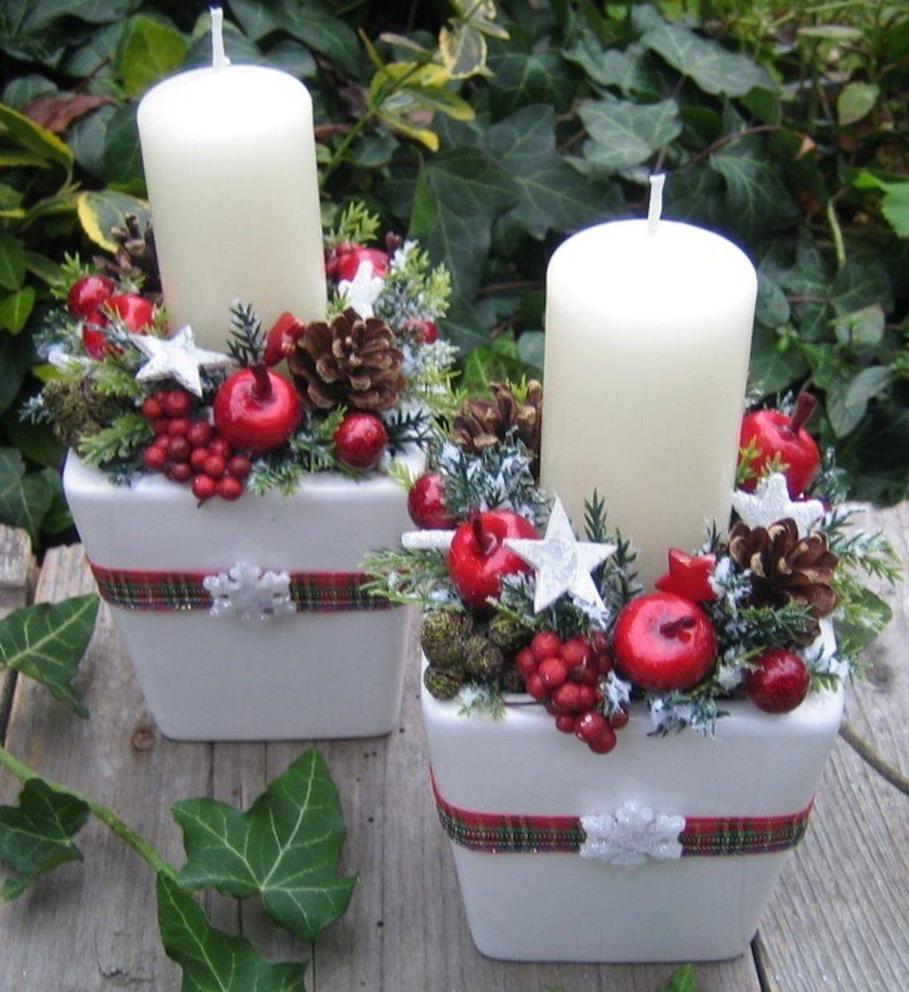 И, кажется, что вот-вот добрый ангел спустится на этот праздник и освятит торжество. Маленькие стеклянные колпачки с огоньками внутри по числу бокалов, приобщают каждого присутствующего к общему доброму огню. Праздник останется с нами. И новые свечи зажгут огонёк надежды во мраке сомнения. Декор свечей на Новый год 2019 — 90 фото: