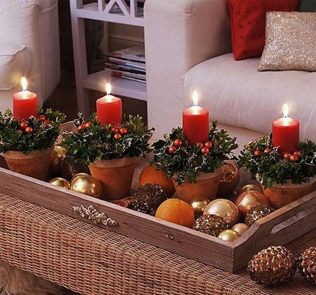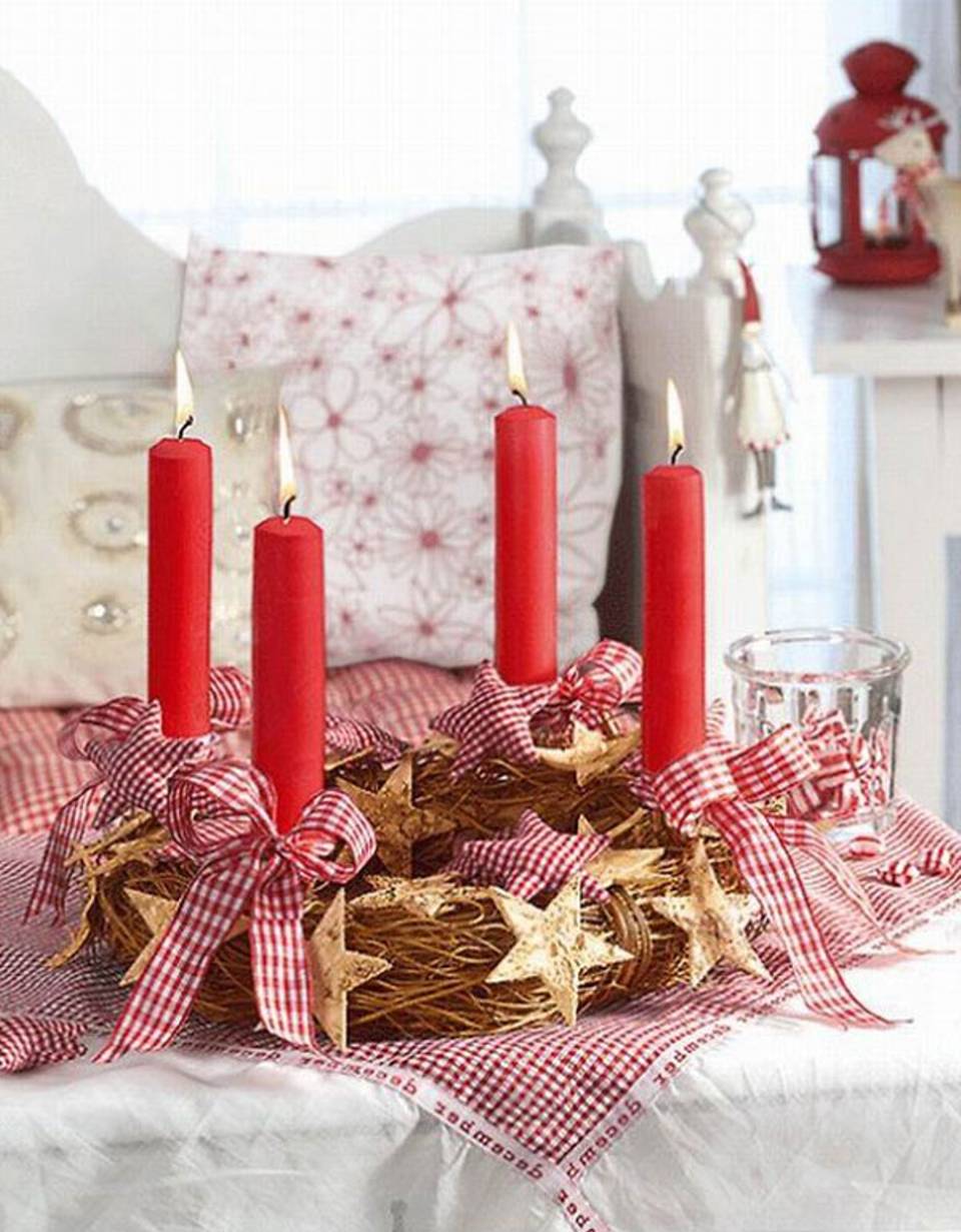 Украшать интерьер свечами – давняя традиция, пришедшая из тех времен, когда электричества в домах не было. Тогда даже на ветвях елей устанавливали маленькие свечи. А еще в католической традиции во время рождественского поста каждое воскресенье возжигать красную свечу. А на рождественском столе должно было гореть четыре таких огонька.