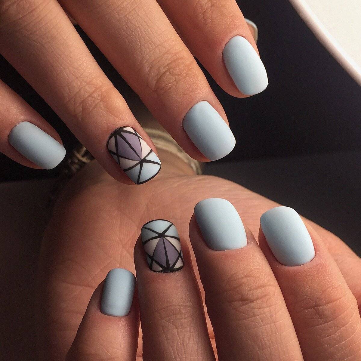 Пастельные тона будут чаще всего дополнять различным декором. Хитом популярности станут ногти, покрытые лаком пастельного оттенка с прорисованным геометрическим узором, например, тонкими косыми линиями или треугольником.