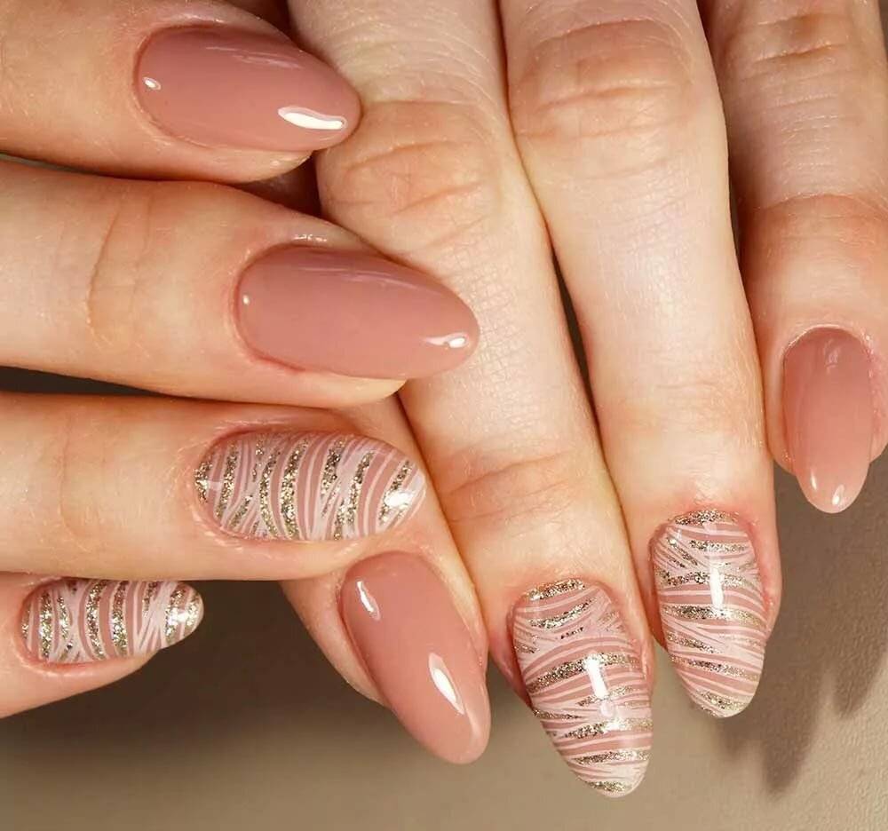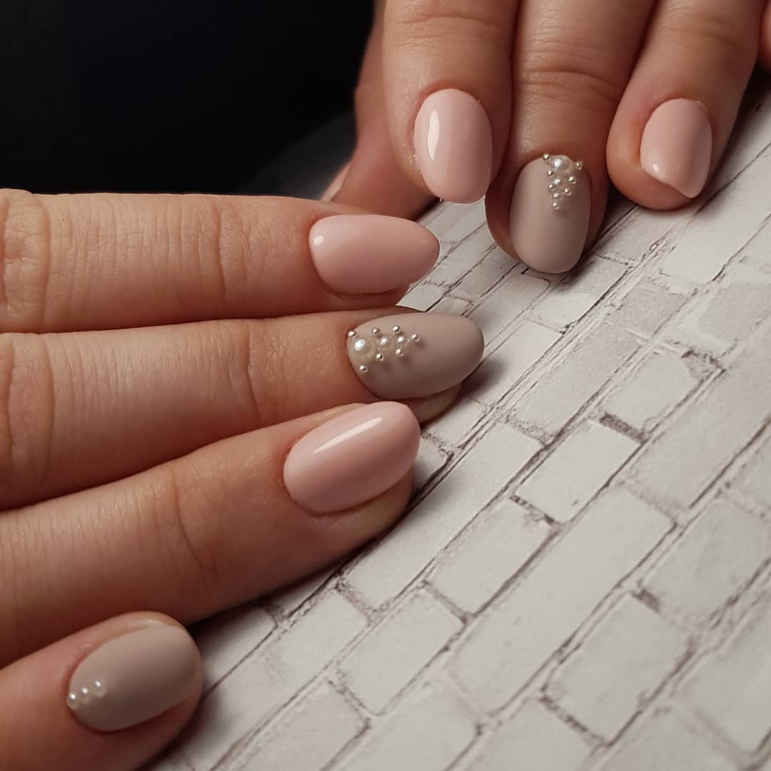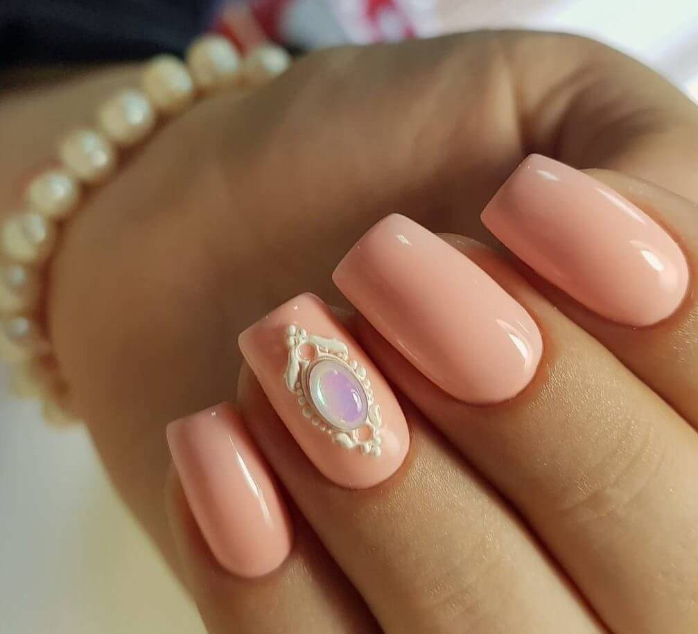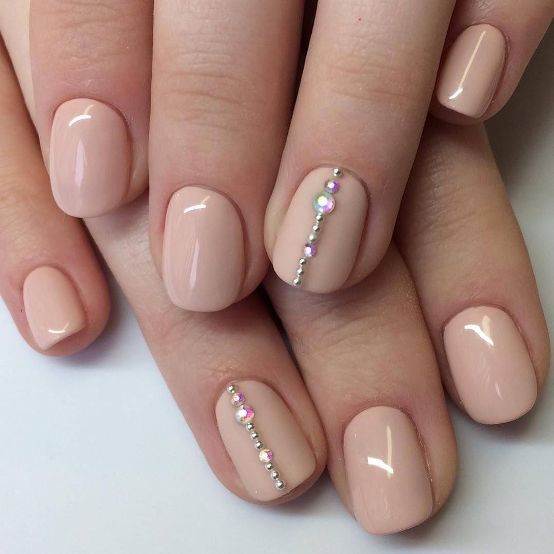 Он великолепно смотрится на ногтях любой длины и формы, как на круглых, так и на миндалевидных. Изюминка маникюра нюд в его простоте и лаконичности. Обычно он используется для завершающего штриха в повседневном образе Но для праздничного вечера нюд считается также беспроигрышным вариантом. Ведь нежные цвета лака легко можно сочетать с нарядами любых оттенков. При этом на одном ноготки можно сделать яркую вставку из стразов или фольги.