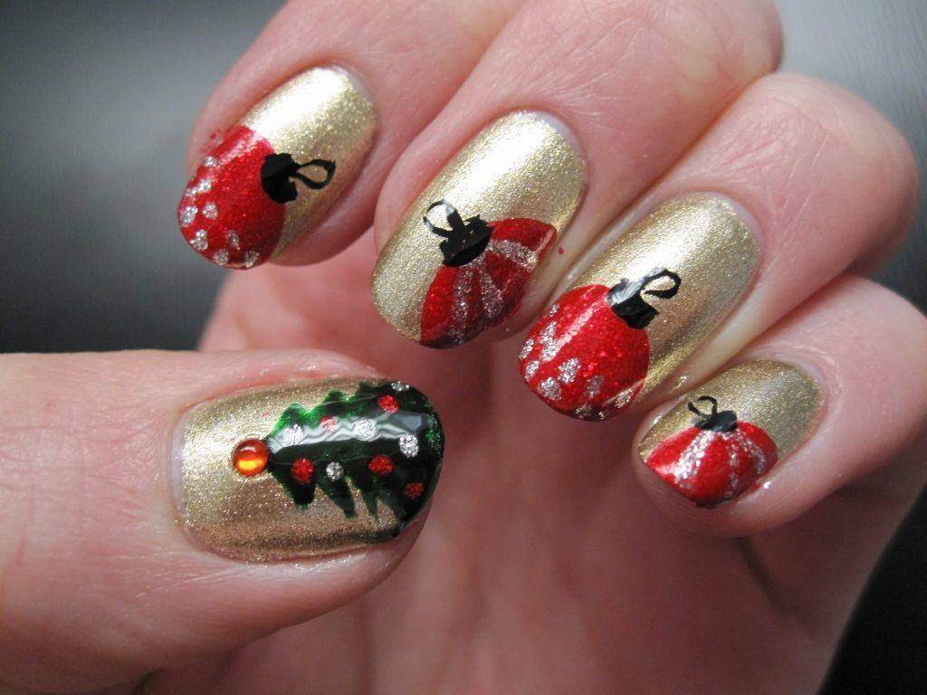 При желании елочку можно украсить цветными шариками с помощью дотса или зубочистки, а если она золотистая, можно нарисовать серые полосочки. Поменяйте цвета лаков и сделайте зеленую елку на белом фоне или белую заснеженную на красном или черном. Ограничений никаких. А ниже представлены фото различных идей новогоднего маникюра с ёлочкой. Смотрите и выбирайте на свой вкус