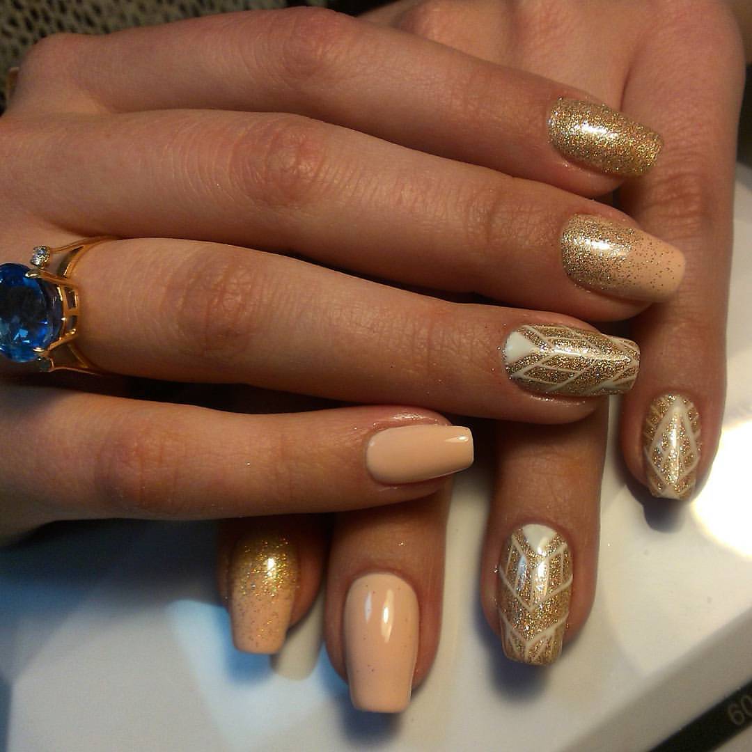 Небольшие акценты. Для тех девушек, которые хотят, чтобы их маникюр не сильно бросался в глаза, но при этом выглядел красиво и дорого, мы рекомендуем сделать на ногтях лишь небольшие акценты. Отлично будут смотреться маленькие декоративные элементы из глиттера или крошечных страз. Также можно использовать специальную фольгу золотистого или серебряного оттенка.