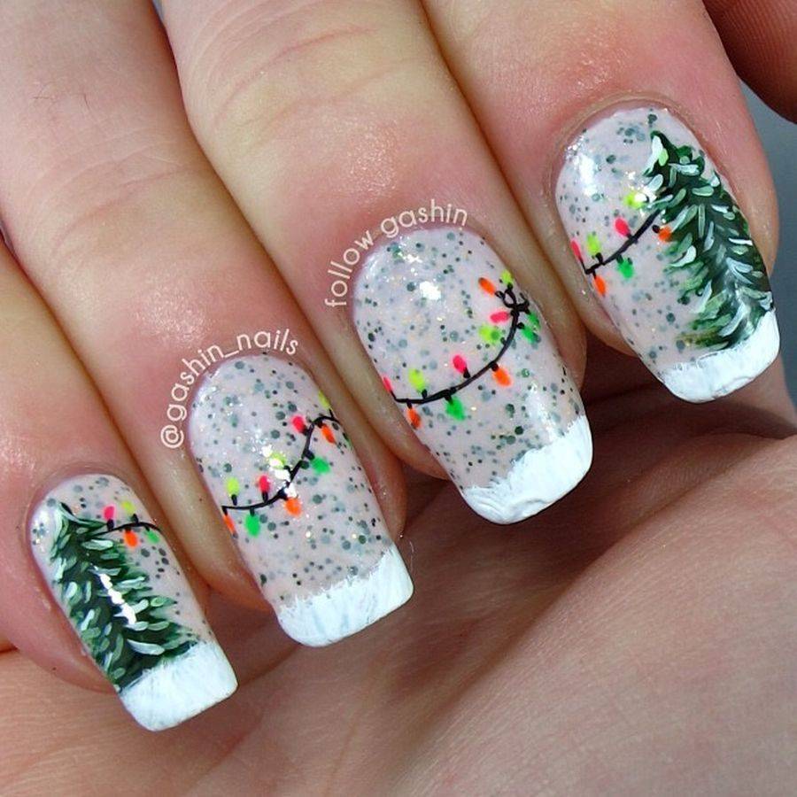 Очень популярными, который год подряд являются тематические Новогодние рисунки на ногтях. Различные Новогодние гирлянды, Дед морозы, снеговики, елки, елочные шары и снежинки. Сочетать их можно с любым цветом и дизайном маникюра. Такие рисунки мастера делают как при помощи кисточки и гель-красок, так и при помощи стемпинга или наклеек. Посмотрите какие красивые и сказочные получаются ноготки с этими рисунками.