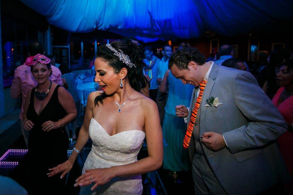 Помимо подвижных музыкальных соревнований, участники банкета любят обычные танцы. Конкурсы – это лучшее развлечение на свадьбе, но их чрезмерное количество утомляет. Поэтому заранее выбирают разноплановые композиции, под которые приглашенные на свадьбу продолжат зажигать на танцполе.