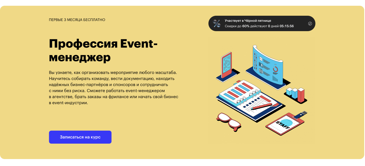 Второй вариант — онлайн-курсы по направлению event-менеджмент. Это удобный вариант, чтобы получить представление о профессии и стартовые навыки. Некоторые онлайн-школы также помогают составить резюме и даже устроиться на работу.