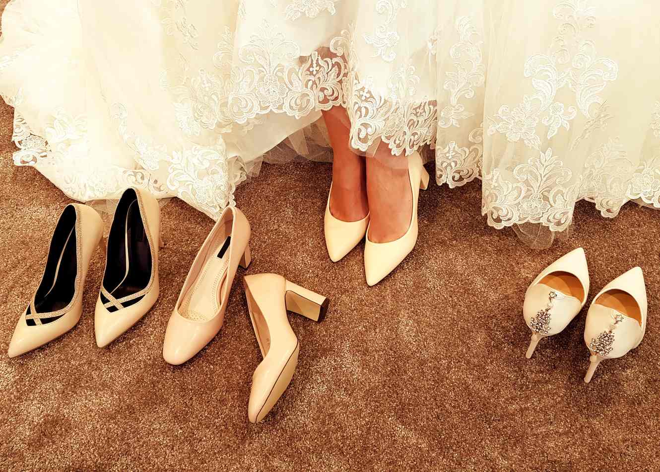 Самым идеальным вариантом считается приобретение нескольких пар обуви для дня свадьбы. Чтобы во время торжественной церемонии невеста была обута в изящные туфли на высоком каблуке, а на прогулке и в моменты танцевальной части программы – в более удобную обувь. Поэтому, если позволяет бюджет, не раздумывая приобретайте запасную пару свадебных туфлей или, например, балеток.