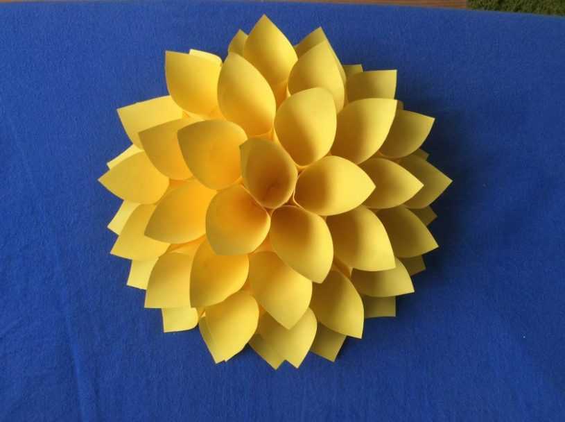 Такие нити похожи на тычинки. Сделать цветы из бумаги на стену можно несколько иным методом. Заключается он также в изготовлении больших лепестков разного размера. Только в данном случае их приклеивают не к основе, а друг к другу.