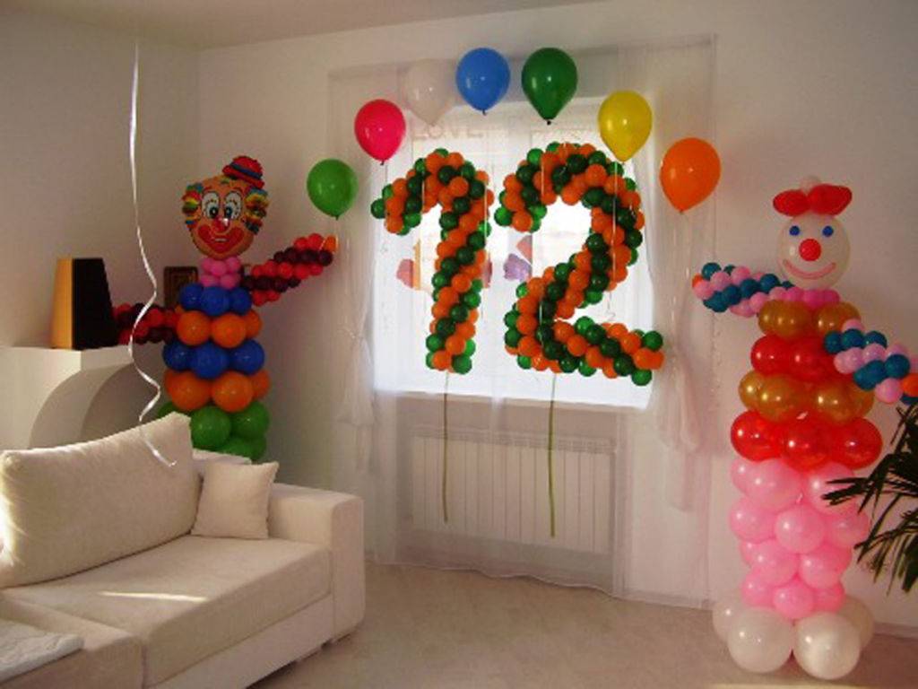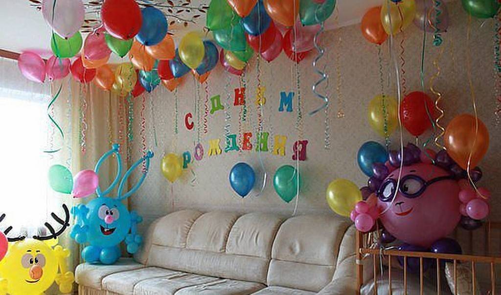 - воздушные шары разных размеров и цветов: их можно развесить как в хаотическом порядке, так и сделать из них фигуры животных, цветы, радугу, облака;