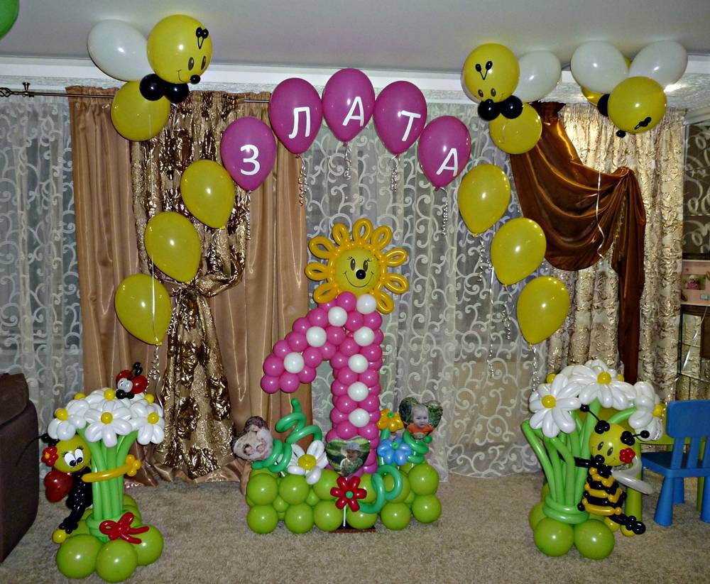 - растяжки с поздравительными словами, именем ребенка или героями мультфильмов.