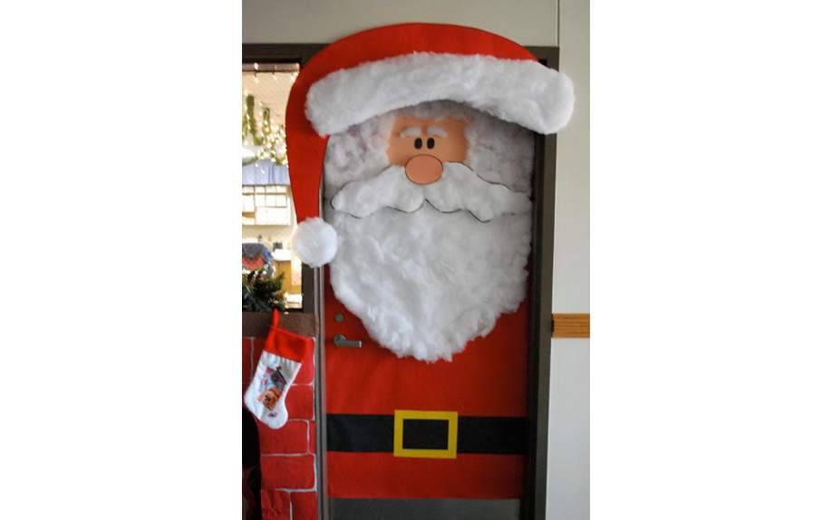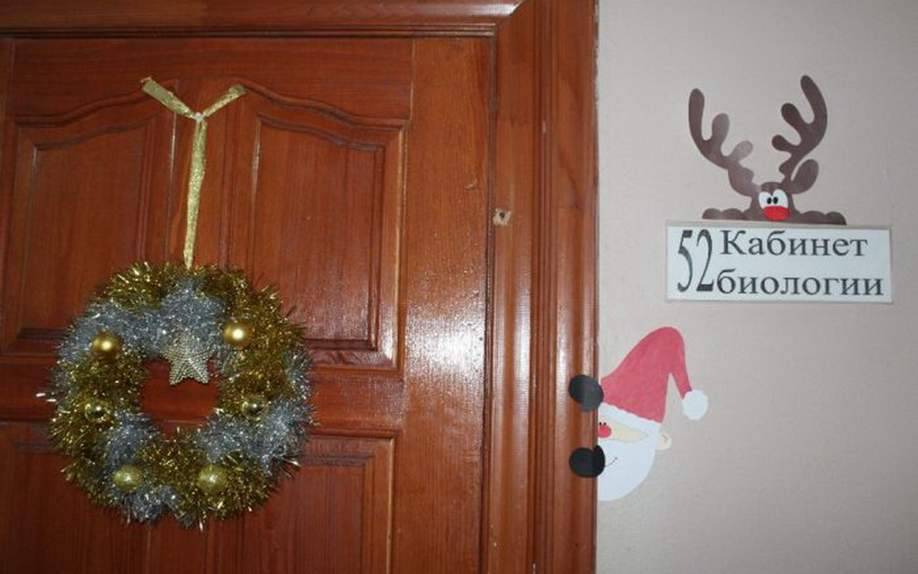 Оформление кабинета нужно начинать с дверей. Вход в помещение обычно украшается рождественским венком, но в дополнение можно также использовать и другие декоративные элементы. Венок можно смастерить из сосновых шишек, еловых веток или бумаги.