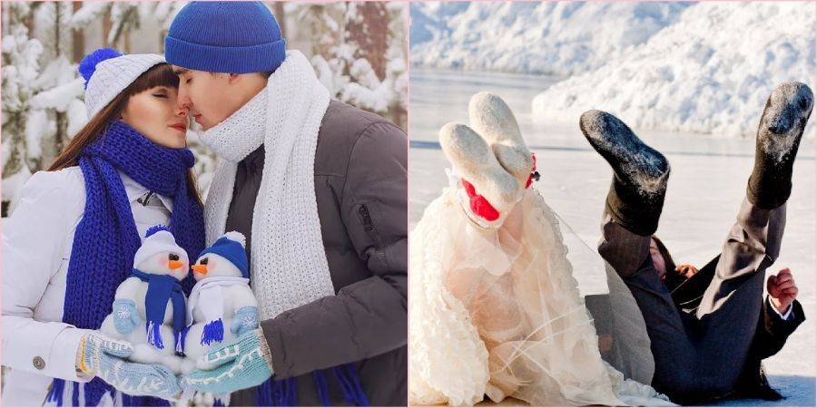 - Устройте фотосессию на природе, инсценировав чаепитие или игру в снежки. Не берите на прогулку с собой гостей, чтобы они не замерзли во время фотосессии.