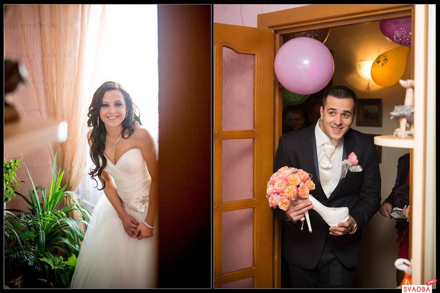 Обычно такие конкурсы проводят перед поездкой молодых в ЗАГС, когда жених со свидетелями приезжает за невестой.