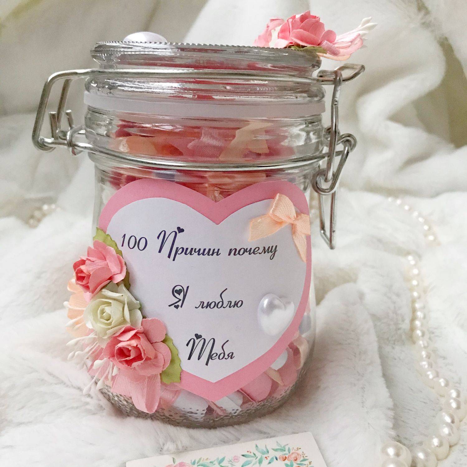 Стеклянная баночка, внутри которой, на небольших листочках, собраны памятные фразы и даты, воспоминания и признания в любви.
