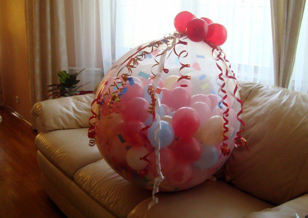 Если в ваши планы входит подарить деньги, но не хочется делать этого банально и скучно, то рассмотрите следующий вариант. Внутрь прозрачного воздушного шара с широким горлышком нужно положить денежную купюру определенного достоинства, а затем объединить надутые «денежные» шары вместе. Этот способ подарка более оригинальный, чем деньги, просто подаренные в конверте. Вместе с купюрами можно наполнить шары блестящими конфетти, будет очень эффектно.