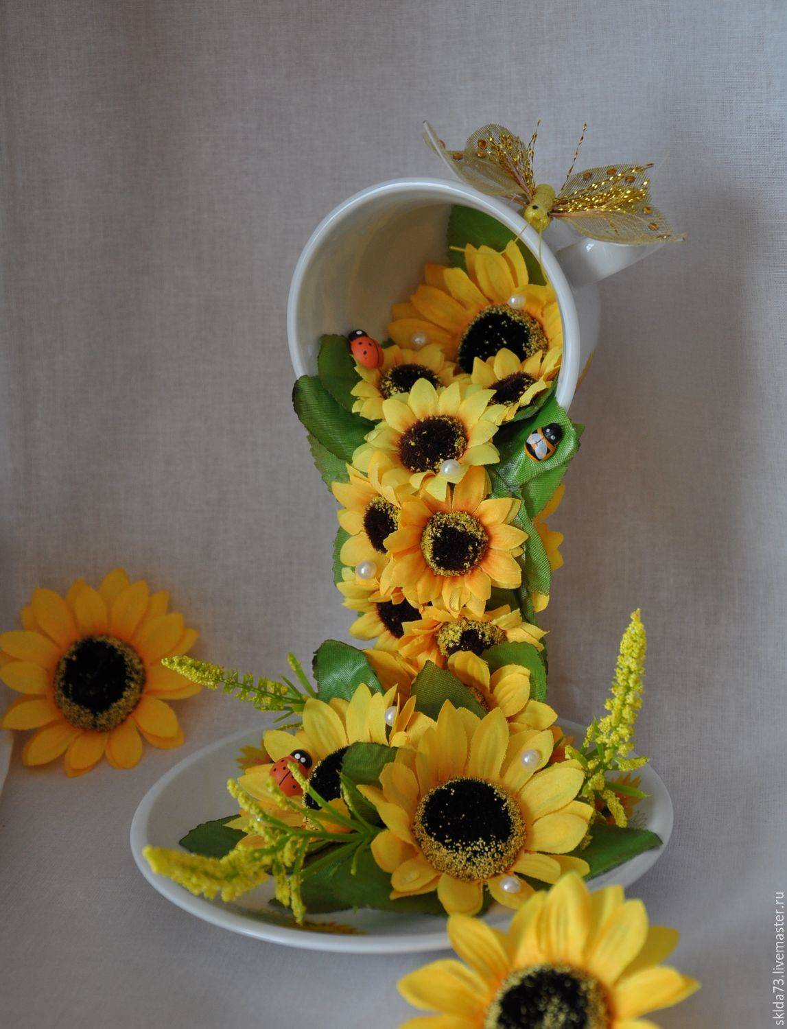 Подсолнух – яркий желтый цветок, символизирующий богатство и достаток. С его помощью Вы можете создать такую солнечную парящую чашечку, притягивающую достаток в дом!)