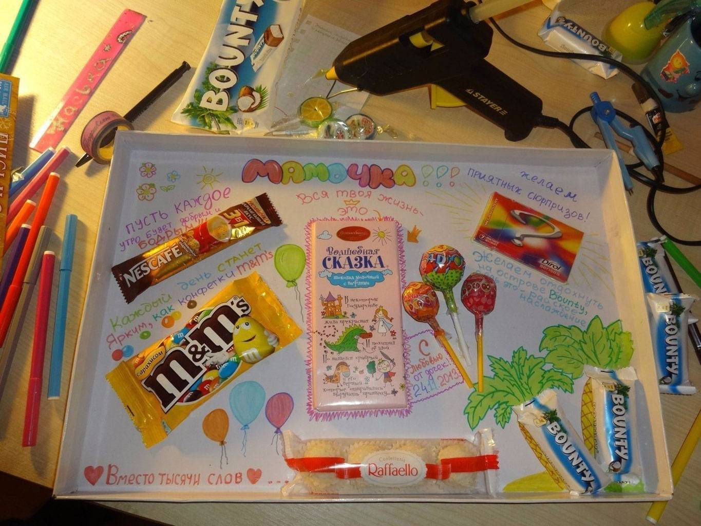 Когда концепция плаката согласована, останется только купить всё задуманное и приступать к сборке сладкого подарка.