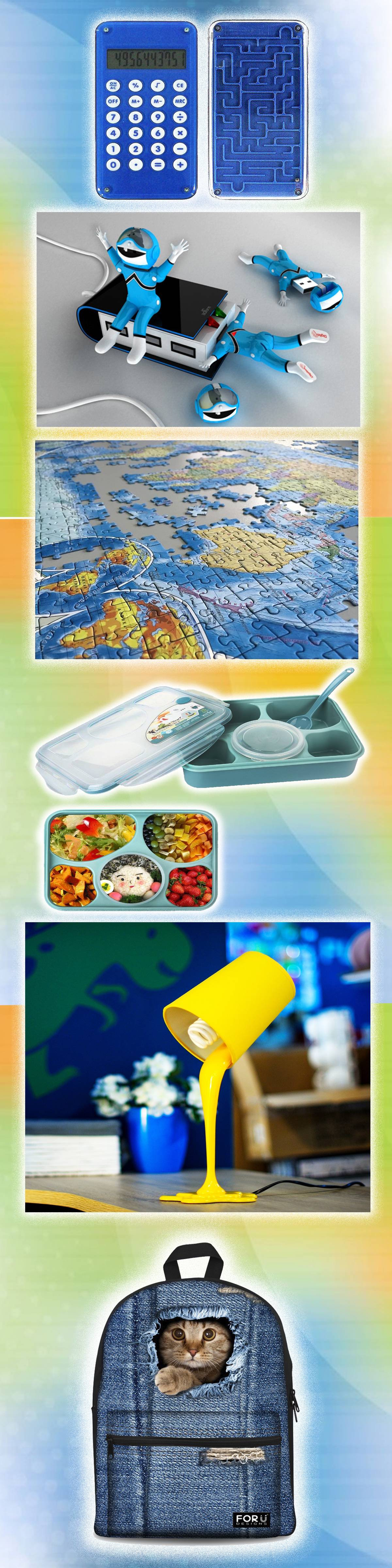 - оригинальные канцелярские товары (точилка в форме черепашки или человека-паука, ластик в виде машинки, пенал-акула, шариковая ручка-ангел и т.д.)