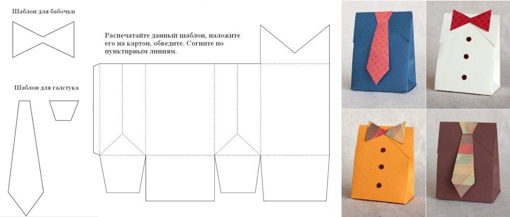 Положить подарок на 23 февраля можно в пакет, изготовленный своими урками