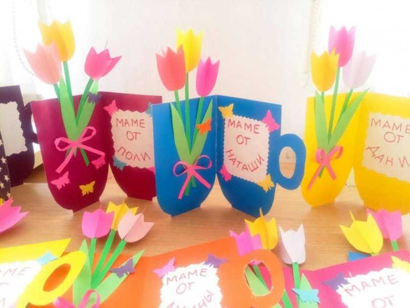 Открытка не единственное изделие из простейшего подручного материала, которое может порадовать воспитателя. Весьма неординарной идеей будет изготовление большого плаката с различными рисунками и пожеланиями от всей детворы класса.