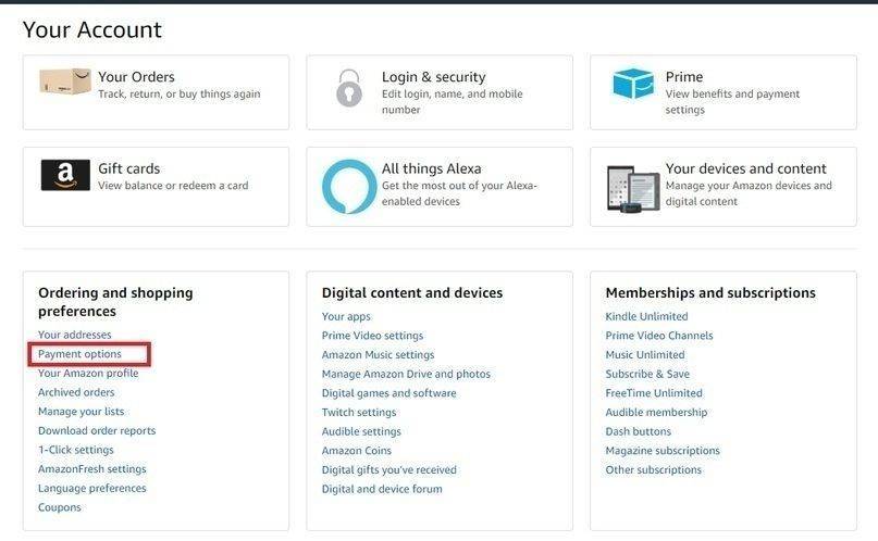 1) Заходим на сайтhttps://www.amazon.com/и логинимся под своим нужным Амазон аккаунтом если ещё не вошли в него.Разворачиваем меню«Accounts & Lists»,далее«Your Account».