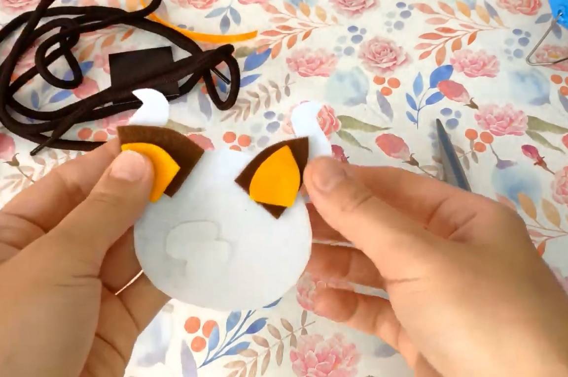 Шаг 1: Вырезать шаблоны из фетра. Голову и основу для глаз из белого фетра, ушки из коричневого и оранжевого фетра.