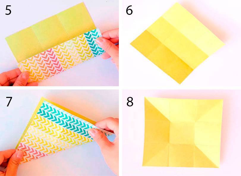 - Сложите квадратный лист по горизонтали, а потом по вертикали.